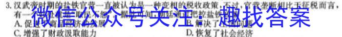 3.汉武帝时期的盐铁官营一直被认为是一种变相的税收政策,不过,官营垄断相比于征税而言,有一个好处就是“取民不怨”,据此可知,朝廷通过把控盐铁政策A.促进了商品经济的发展B.解决了王国问题C.增强了财政汲取能力D.恢复了社会经济