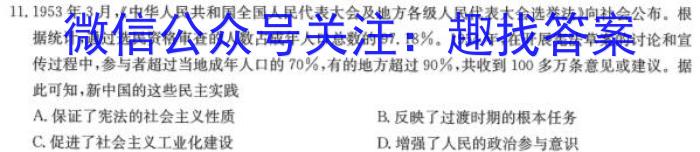 11.1953年3月,《中华人民共和国及地方各级人民代表大会选举法》向社会公布。根据统计,通过选民资格审查的人数占成年人口总数的97.18%。1954年,在开展宪法草案的讨论和宣传过程中,参与者超过当地成年人口的70%,有的地方超过90%,共收到100多万条意见或建议。据此可知,新中国的这些民主实践A.保证了宪法的社会主义性质B.反映了过渡时期的根本任务C.促进了社会主义工业化建设D.增强了人民的政治参与意识