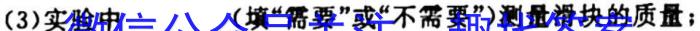 (3)实验中(填“需要”或“不需要”)测量滑块的质量;(4)根据多次实验记录的H和t数据作出H-1t^2图像如图丙所示,滑块与长木板间的动摩擦因数=,重力加速度大小g=(用题中所给的字母及图丙上数据a、b,c表示)。