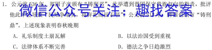 1.公元前536年,郑国子产颁布“铸刑书”,此举遭到晋国保守贵族叔向的指责,批评他此举会导致“民知争端矣,将弃礼而征于书”。公元前513年,晋国也颁布“铸刑鼎”。上述现象表明春秋晩期A.礼乐制度土崩瓦解B.以法治国受到重视C.法律体系不断完善D.德法之争日趋激烈