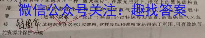 16.(3分)英科学家研发出一种“激光橡皮”.在激光照射下,纸张上的黑色碳粉直接填物态变化名称)为高温碳蒸气,字迹消失,在这个过程中要(选填“吸收”或“放出”)热量;经过特殊冷却装置,高温碳蒸气又置接凝华(填物态变化名称)成碳粉,这样废纸和碳粉重新得到了利用,可有效地节约资源并保护环境.