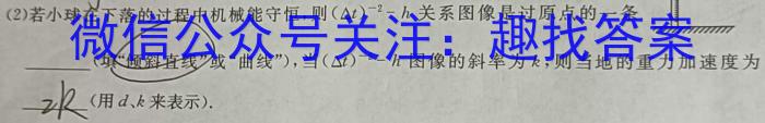 (2)若小球在下落的过程中机械能守恒,则(t)^-2-h(填“倾斜直线”或“曲线”),当(t)^-2-h图像的斜率为k,则当地的重力加速度为水(用d、k来表示).