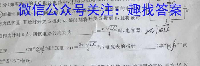 10.(3分)如图所示的LC振荡电路中,④为灵敏电流计,电流向右流过④C④时指针向右偏,反之向左偏,线圈的自感系数L、电容器的电容C均为已知量.开始时开关S扳到a,某时刻将开关S扳到b,且将该时t=LC4TEsa刻作为计时点.则该电路的周期为时,电容器2π//(正在(填“充电”或“放电”);t=3LC4时,电流表的指针(填“向右”“向左”或“不”)偏转.