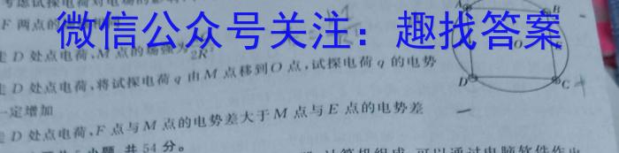 零,不考虑试探电荷对电场的影响,下列说法正确的是A.E、F两点的场强相同ABB.移走D处点电荷,M点的场强为。kQ2R^3E=&12AFEC.移走D处点电荷,将试探电荷由M点移到O点,试探电荷q的电势q能一定增加DD.球走D外点电荷、F点与M点的电势差大于M点与E点的电势差