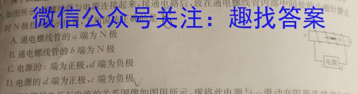 如图所示两8.如图所示,将螺线管与电源连接起来,接通电路后,放在通电螺线管内部中间处的小磁针止8时N极指向图示位置,下列说法正确的是磁针器止A.通电螺线管的a端为N极aB.通电螺线管的b端为N极C.电源的c端为正极,d端为负极D.电源的d端为正极,c端为负板极电源