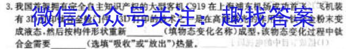 3.我国首架拥有完全自主知识产权的大型客机C919在上海浦东机场成功首飞。飞机装有3D打印合金舱门件,3D打印的技术之一是在高能激光的作用下,钛合金粉末变成液态,然后按构件形状重新(填物态变化名称)成型,该物态变化过程中钛合金需要(选填“吸收”或“放出”)热量。1)
