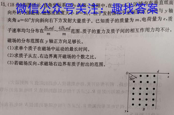 0≤x≤d15.(18分)如图所示,直角坐标系xOy的第一象限中,在0 【百师联盟 2024届高三二轮复习联考(二)2物理】相关文章:
